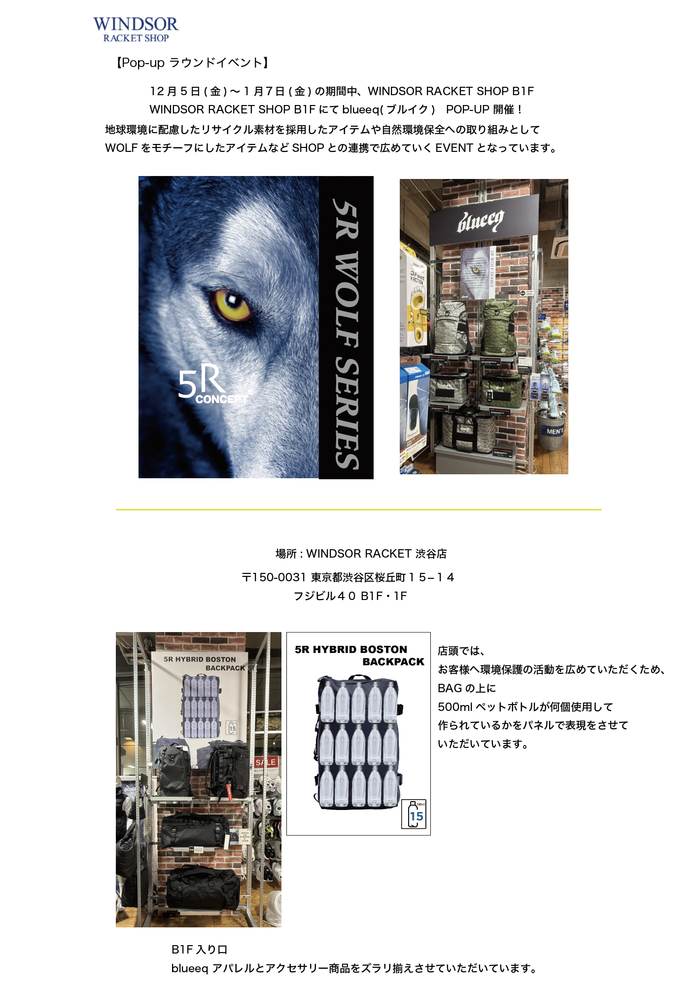 お問い合わせ : WINDSOR RACKET SHOP 渋谷店