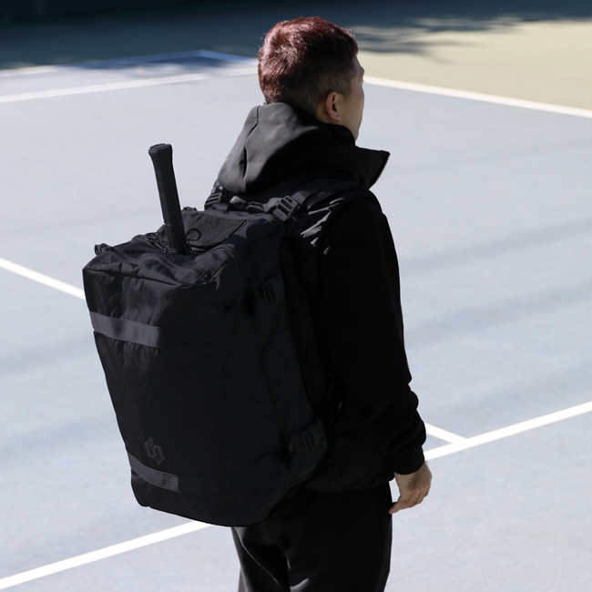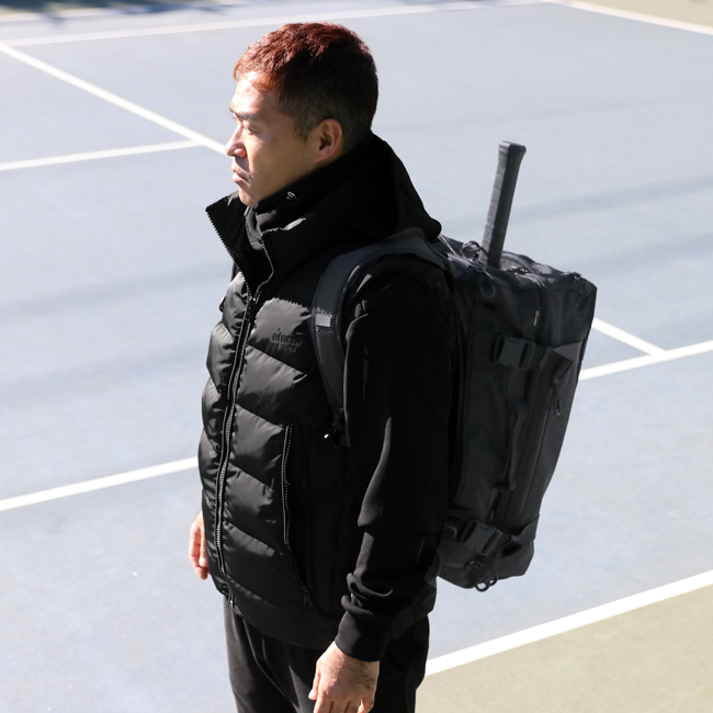 ■ ラケットを装着したまま覆えるレインカバーを内蔵